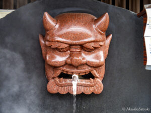 地獄蒸し工房鉄輪さんのお店周辺には足湯に湯冷滝と、様々な観光スポットが集まっているのですが、その中の一つに鬼の顔をあしらったスポットがありまして、鬼の口には蛇口がついており、そこからお湯が出ているのですが、一体これが何なのか皆さんは分かりますでしょうか?🤔