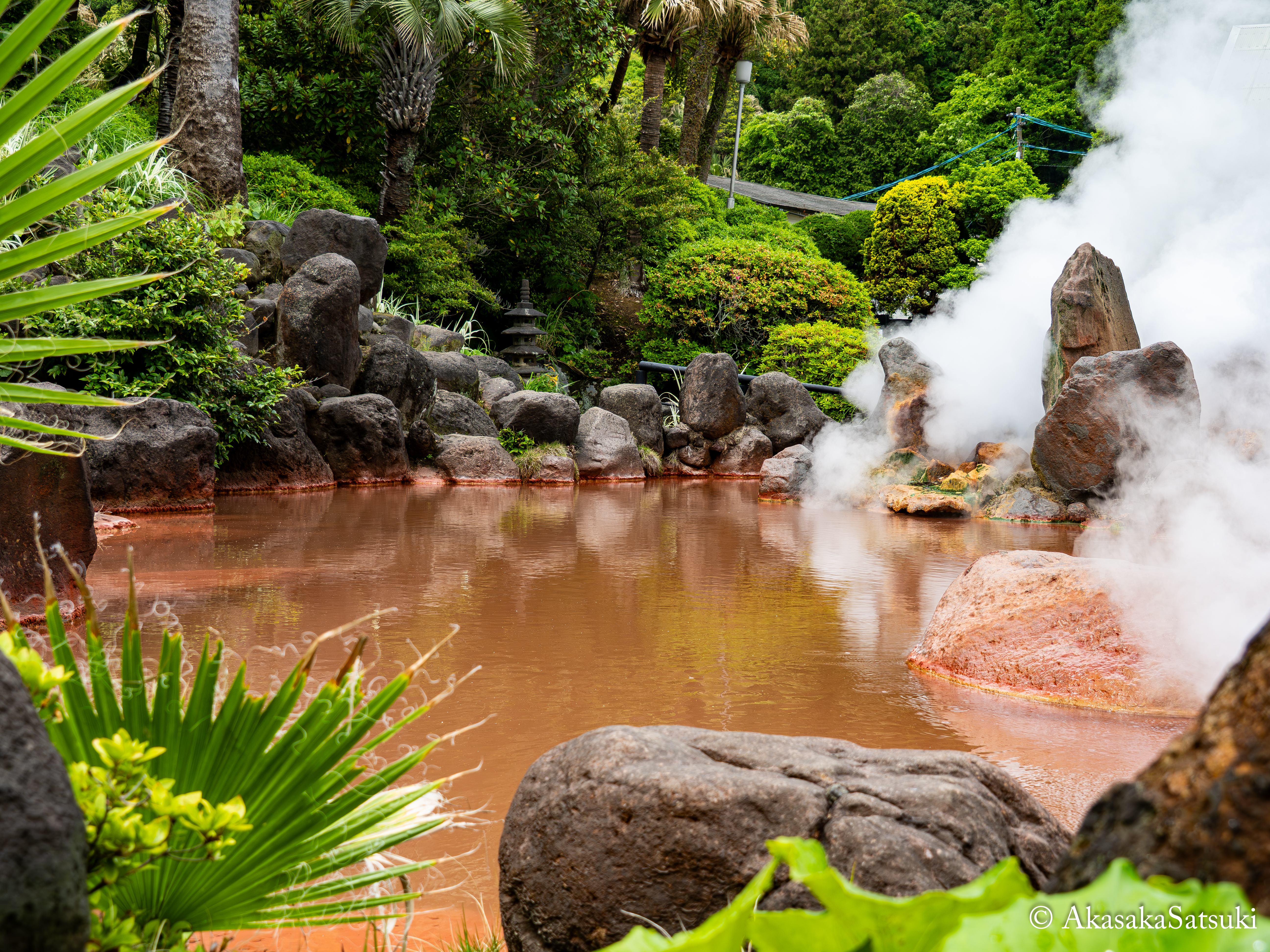 前回は海地獄にあります、蓮の池に群生している熱帯性スイレンの花模様全体にフォーカスして、離れた位置からできるだけ多くの花々が画角に入るよう撮った写真でございましたが、実は蓮の池以外にも、海地獄にはもっと近くで熱帯性スイレンを見ることができる小さな池が存在しておりまして、その池に咲いていた熱帯性スイレンのうち、今度は一輪の花に焦点を当てて一枚撮らせて頂きました!📸✨🌸