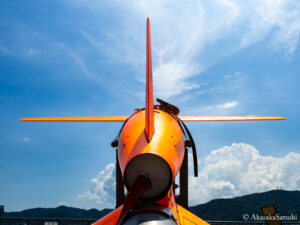 前回に引き続き、訓練支援艦くろべの艦上から無人標的機Chukar IIIの撮影を行っていたのですが、丁度Chukar IIIの周りから他の観覧客の方々が居なくなりましたので、その間を狙ってちょっと視点に思考を凝らしまして、Chukar IIIの背後からカメラを回し、「夏の青空に向かってこれから飛ぶぞっ!」というイメージで、写真を一枚撮ってみました!📸✨