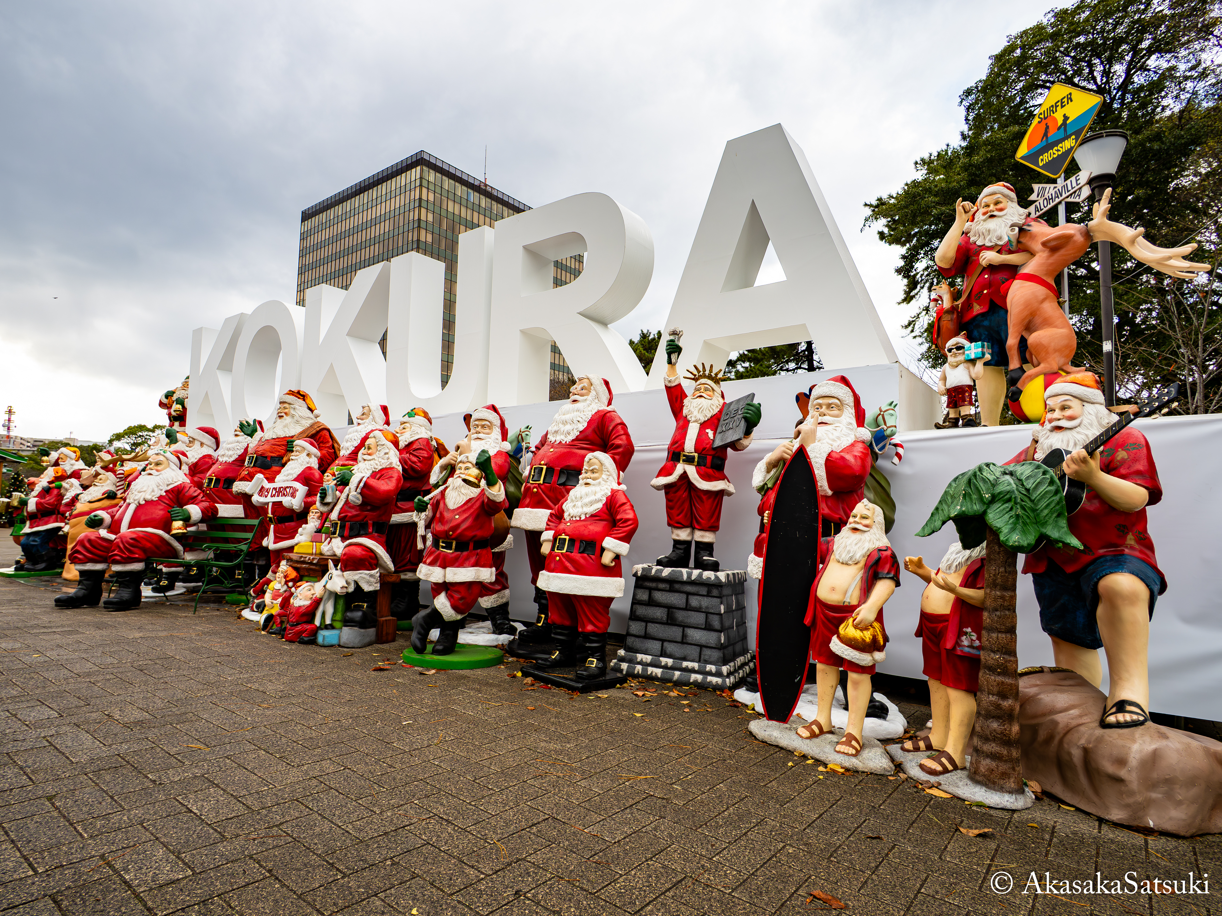 ちなみに写真左端の方の、KOKURAの像の「K」の辺りにはサンタクロースが座っている緑色のベンチがありまして、そのベンチの片方は空いているため、多くの方がそこに座ってサンタクロース達に囲まれながら、記念撮影を行っておりました☺️