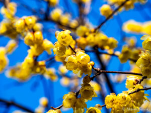 これまで桃色の梅の花、葉牡丹と続きまして、春先特集3枚目の写真は、早春の花の中でも最も早く開花する花の一つであります、蝋梅の花の写真でございます!🌼