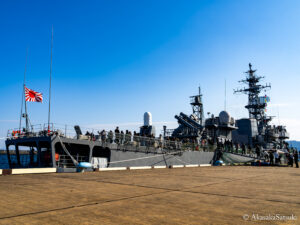 私があぶくまから下艦したのがお昼ちょっと過ぎたくらいの時間帯だったのですが、その時間からでも新しい観覧のお客さんが次々と港に集まっており、あぶくまのタラップの前には列が成されておりましたので、その大盛況の様子を少し離れた位置から、あぶくま全体が見渡せる角度で一枚写真を撮らせて頂きました!📸✨️