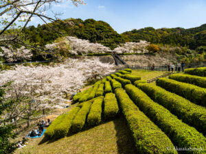 このツツジの低木がある広場も広大でございまして、広場の桜のほかにも、展望台に咲き乱れている桜の木と、緑の山々が背景にあり、とても開放的で長閑な画を撮ることできましたし、ここでこの風景を座ってぼーっと見ているだけで、すごく心が落ち着きました☺️